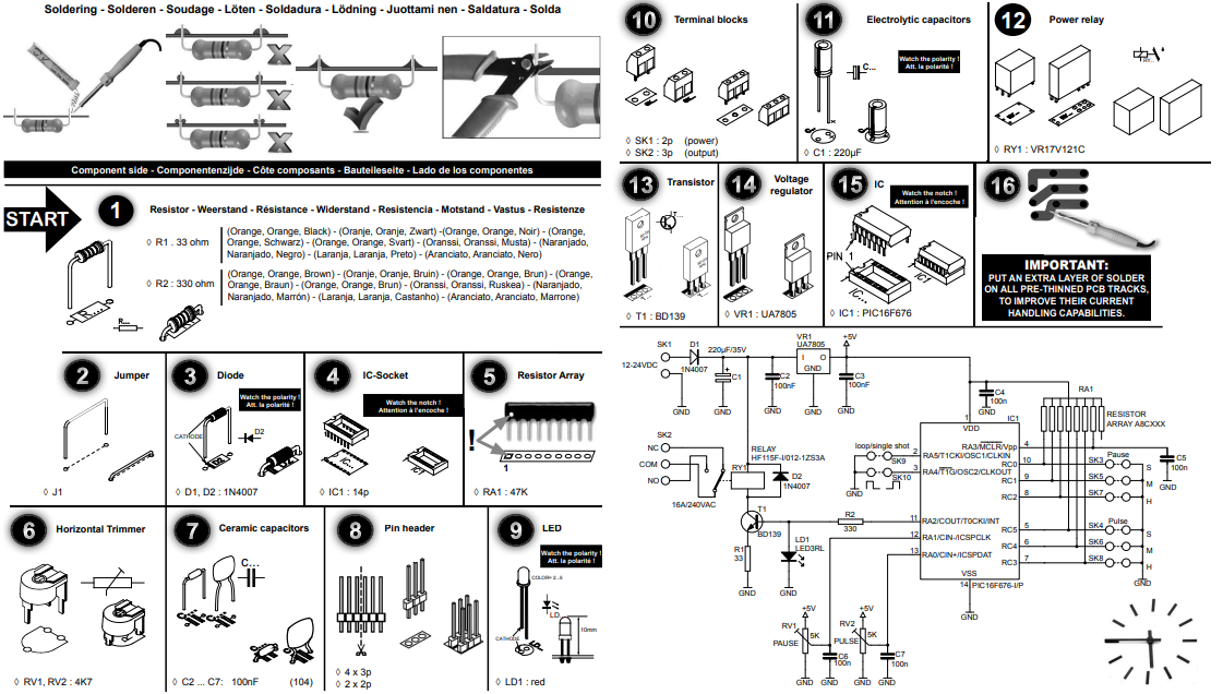 Features Wide timing range Easy time setting Start with ‘pulse’ or ‘pause’ Single shot’ or ‘loop’-selection Αpplications: Blinking of lights Pulsed operation of buzzers Automatic irrigation Lawn sprinklers Toilet flushing or ventilation Battery charging time control Specifications Power supply: 12-24 VDC Relay contact: 16 A max. Dimensions: 80 x 45 x 22 mm / 3.15 x 1.78 x 0.86″