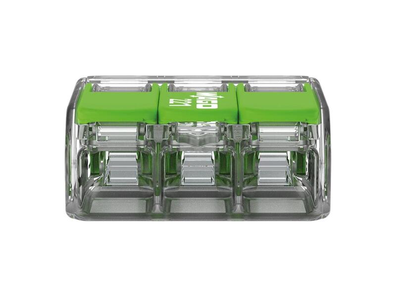 Σύνδεσμος σύνδεσης 3 x 0,2-4mm² για όλους τους τύπους καλωδίων – πράσινος / Compact splicing connector 3 x 0.2-4mm² for all wire types – green