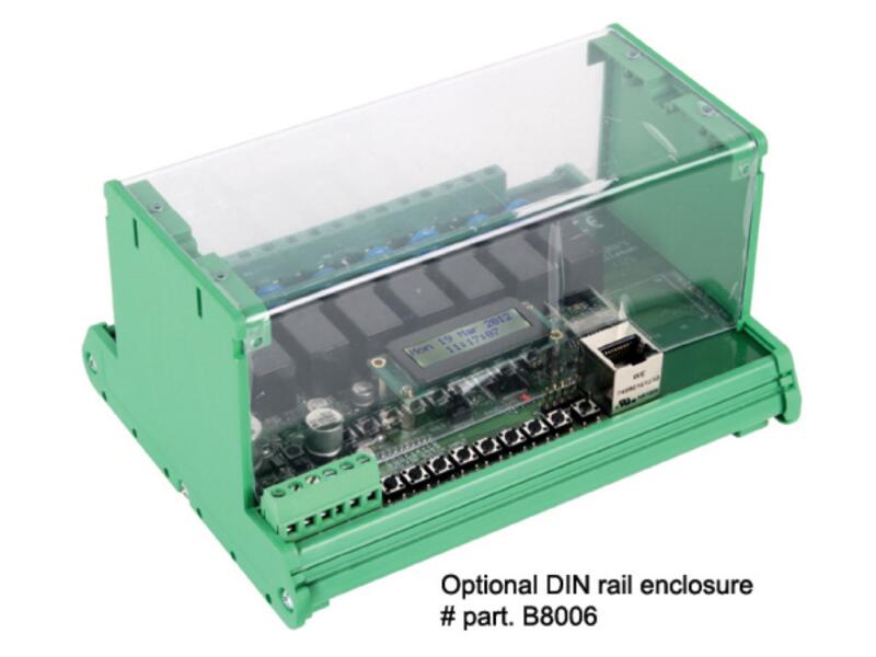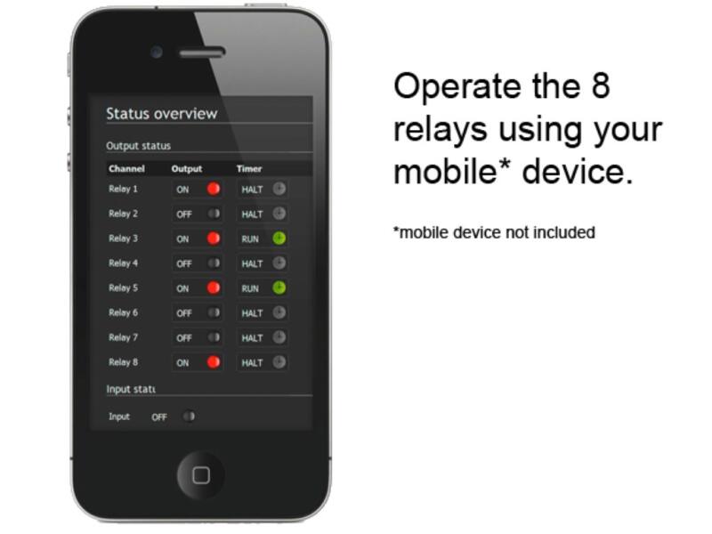 The card simply connects to your (wireless) router by means of a standard network cable. You can operate the 8 relays or check the status of the input from anywhere in world.