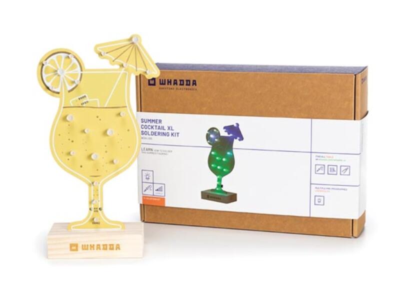 Looking for a fun DIY summer project? Then solder this extra-large cocktail with LEDs in cheerfully changing colours! This educational and creative kit consists of an XL circuit board in the shape of a cocktail glass and all the necessary components including a push button and 19 RGB LEDs (WS2812) that provide a nice soft effect. |