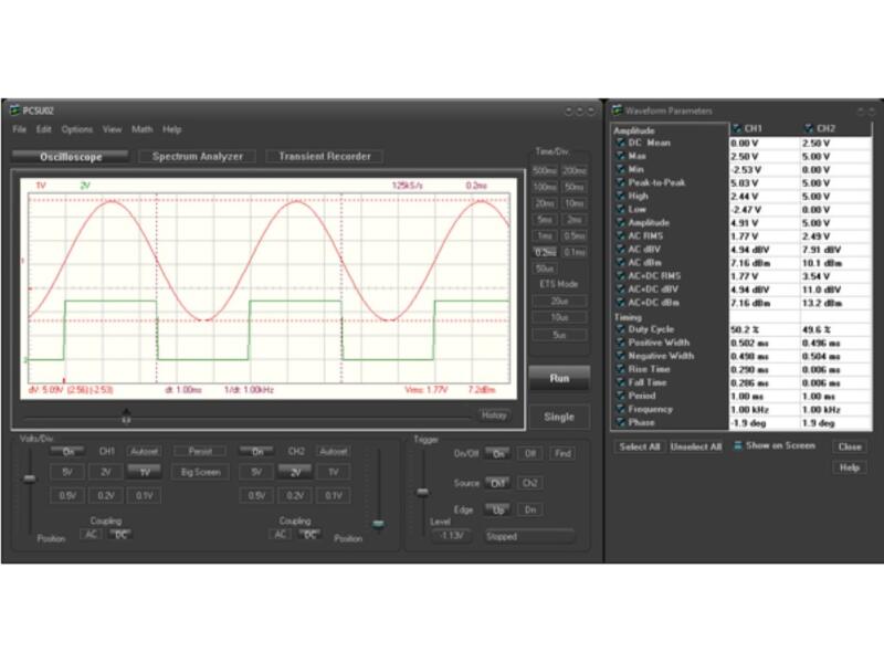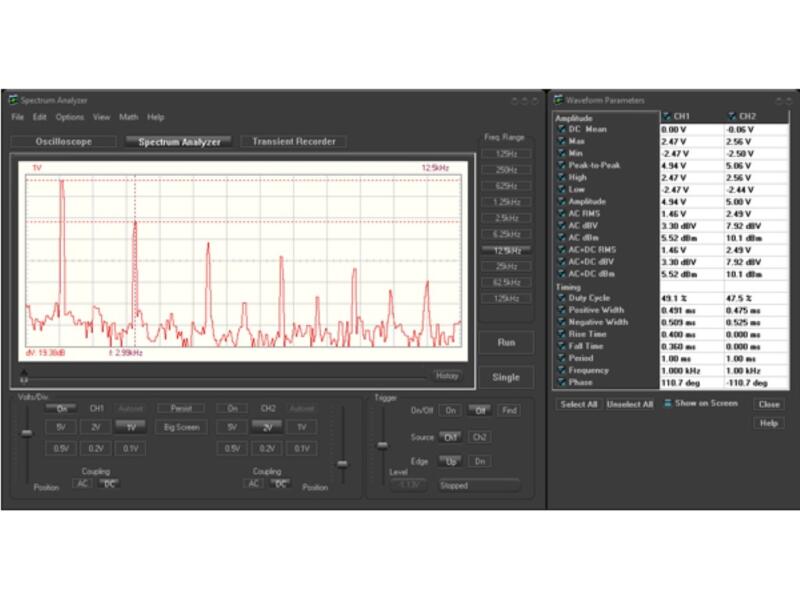 + USB connection: The oscilloscope can be connected directly to a PC via a USB port. This makes it easy to connect and operate the oscilloscope using the supplied software. + User-friendly software: The oscilloscope’s included software is user-friendly and intuitive. + 2-channel measurement: Two separate channels allow you to simultaneously measure two different signals. This is useful when comparing signals or analysing different aspects of a single signal, such as the input and output of a circuit. + Versatile: The oscilloscope can convert invisible electrical signals into visible images, which is useful for studying the changing process of various electrical phenomena.